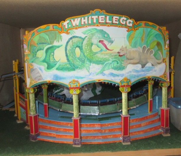 • 1/24th scale Ben Hur Speedway built by Vic King. The Noah’s Ark was one of Vic’s favourite rides and, apart from plans and instructions for ‘standard’ Arks, he designed and helped modellers build different variations based on them.  The ride comes with two converted die cast lorries, one equipped with a DRE generator set and the other with a platform body.  Another award winning model.  Photo to follow.